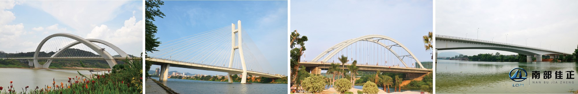 從左至右,分別是南寧大橋、廣西百色拉域大橋、廣西百色田東右江大橋、廣西梧州西江大橋