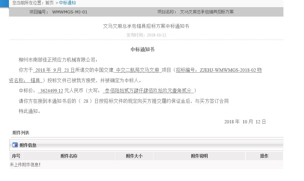 文馬文麻錨具中鐵標(biāo)通知書